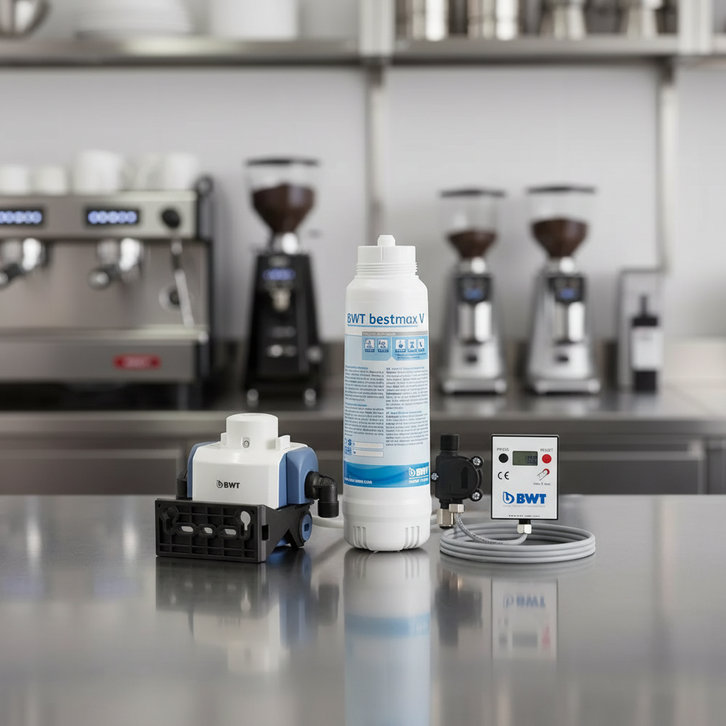 Introducing the BWT bestmax V Water Kit With besthead FLEX & Aquameter, stands as the pinnacle of water filtration excellence, tailored for the diverse needs of the catering industry. This modern solution is powered by the groundbreaking High Efficiency Technology (HET), ensuring unparalleled water optimization for coffee, vending machines, and steam generation in ovens and combi steamers.
