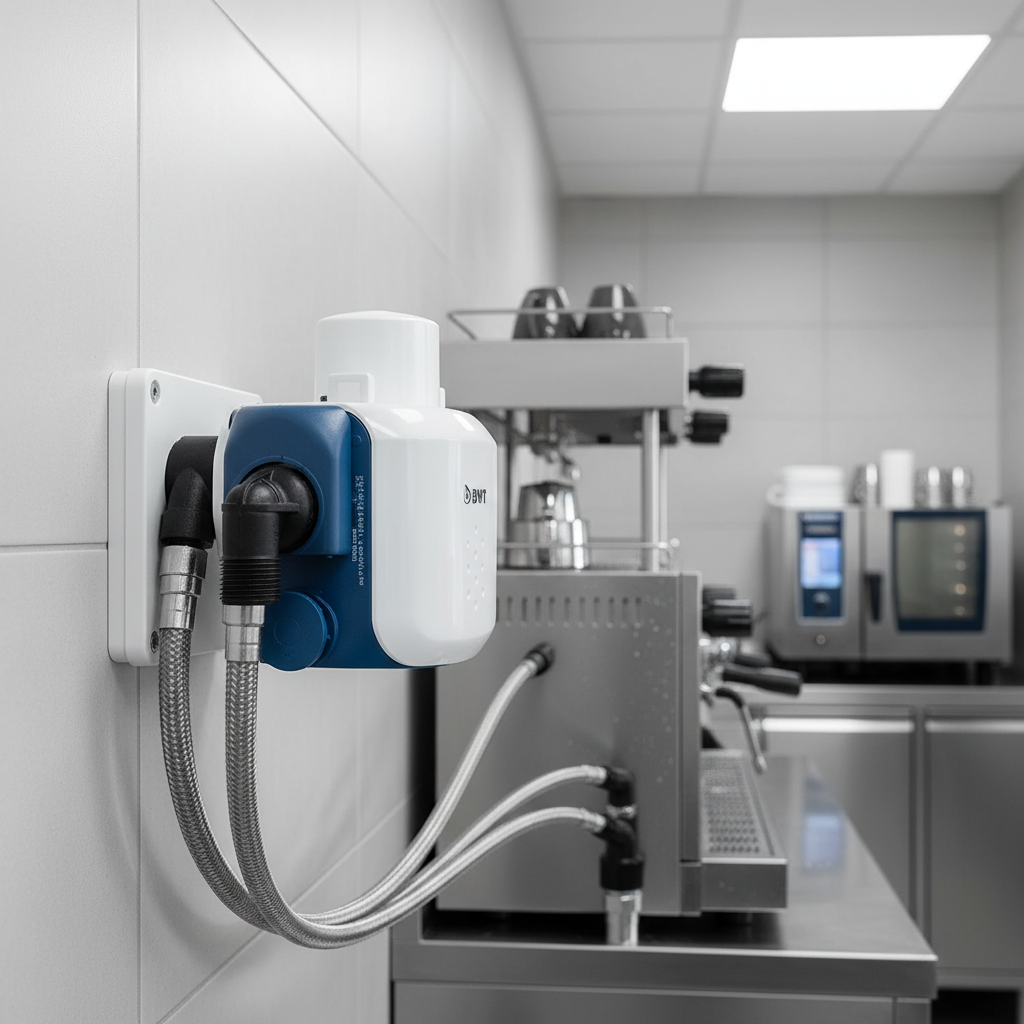 Introducing the BWT besttaste S Water Kit with besthead FLEX and Aquameter filter cartridges, specifically designed to enhance the quality of water for vending machines, coffee machines, and water dispensers. These filters effectively remove any particulates and unpleasant off-flavors and odors, ensuring that both cold and hot beverages dispensed reach their optimum flavor. This enhancement is crucial not only for beverage quality but also for improving the sensory characteristics of water from dispensers.