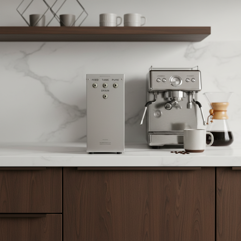 50 GPD Reverse Osmosis – Filters down to 0.0001 microns, eliminating up to 98% of total dissolved solids for exceptional purity.